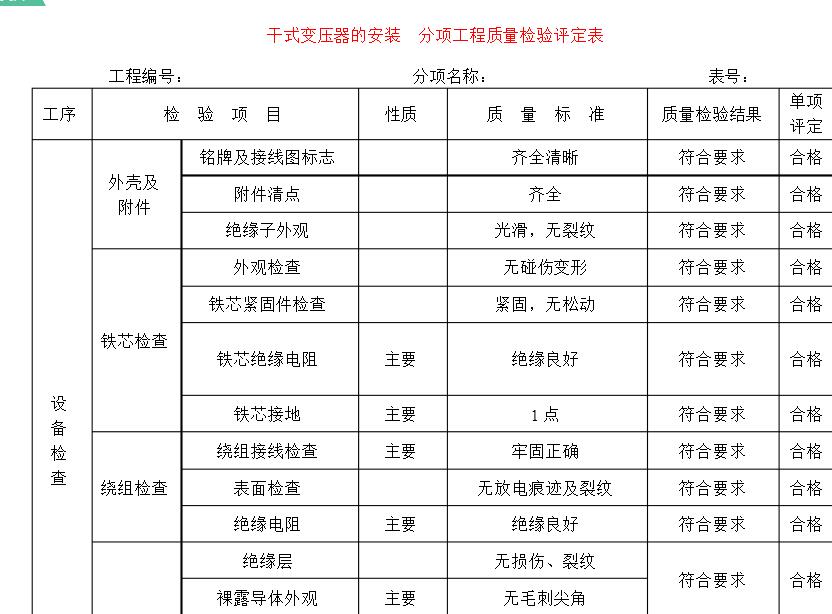 干式變壓器是一種無油工作的變壓器。普通干式變壓器的安裝更為重要。干式變壓器的安裝問題需要引起更多關(guān)注。一般來說,應(yīng)該正確注意。干式變壓器安裝方法不斷提高安裝水平和容量,使干式變壓器更安全,更高效。對于干式變壓器安裝后還要進(jìn)行評估,普通公司如何評估安裝后?以下是常見的表格供您參考:
